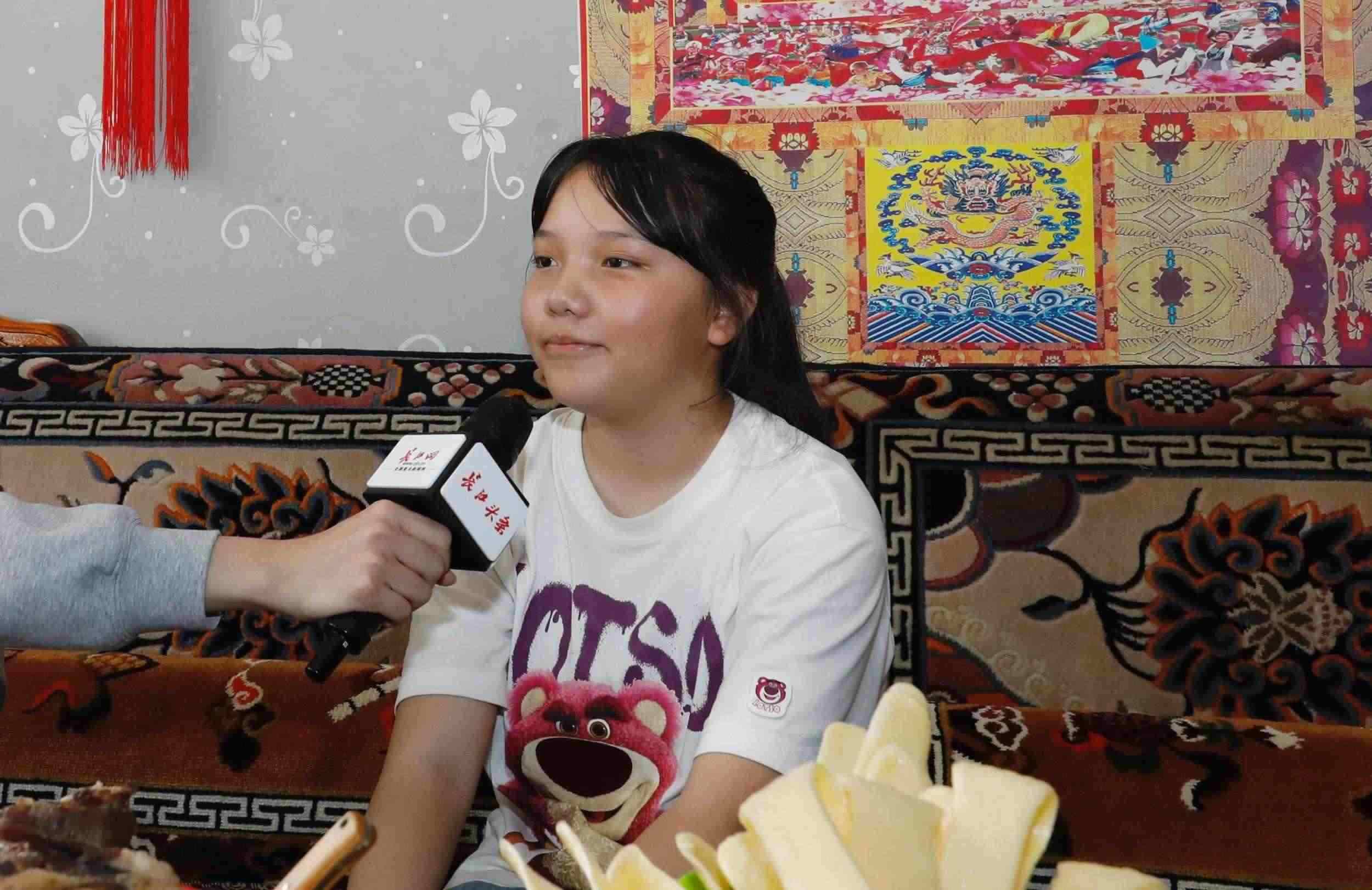2023年7月22日,在青海省海西蒙古族藏族自治州格爾木市唐古拉山鎮(zhèn)長江源村的家里,12歲的藏族女孩次央拉姆熱情地說道。長江日報記者看到,次央拉姆家中墻上掛著習(xí)近平總書記擁抱她的照片。