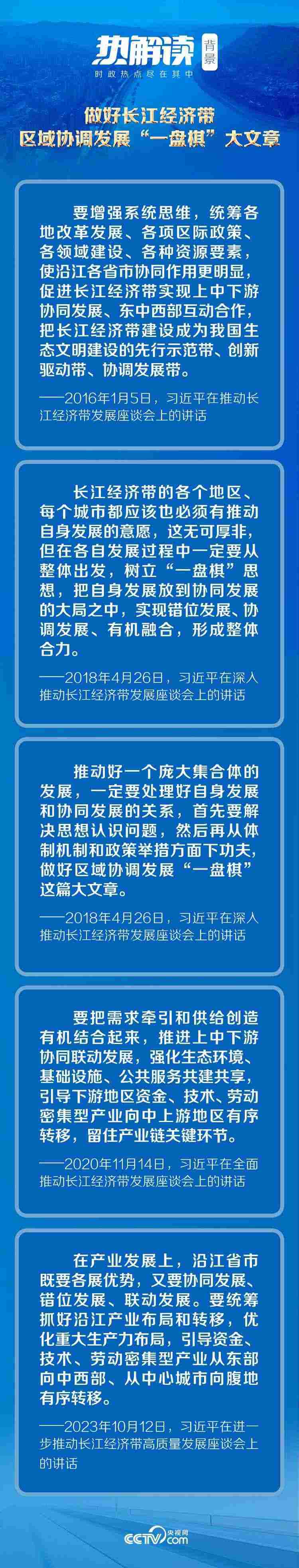 沿江省市如何把自身發(fā)展投入?yún)f(xié)同發(fā)展大局,實(shí)現(xiàn)錯(cuò)位發(fā)展、協(xié)調(diào)發(fā)展、有機(jī)融合,形成整體合力?總書記在此次座談會(huì)上對(duì)沿江省市提出16字鮮明要求——“省際共商、生態(tài)共治、全域共建、發(fā)展共享”。