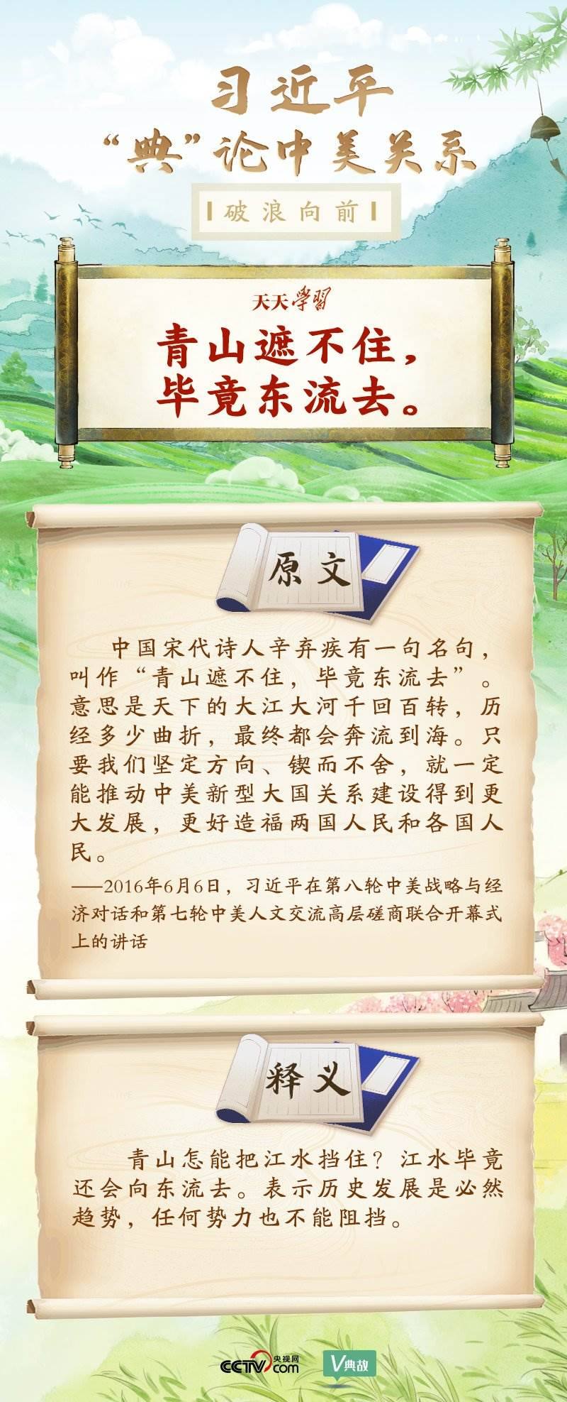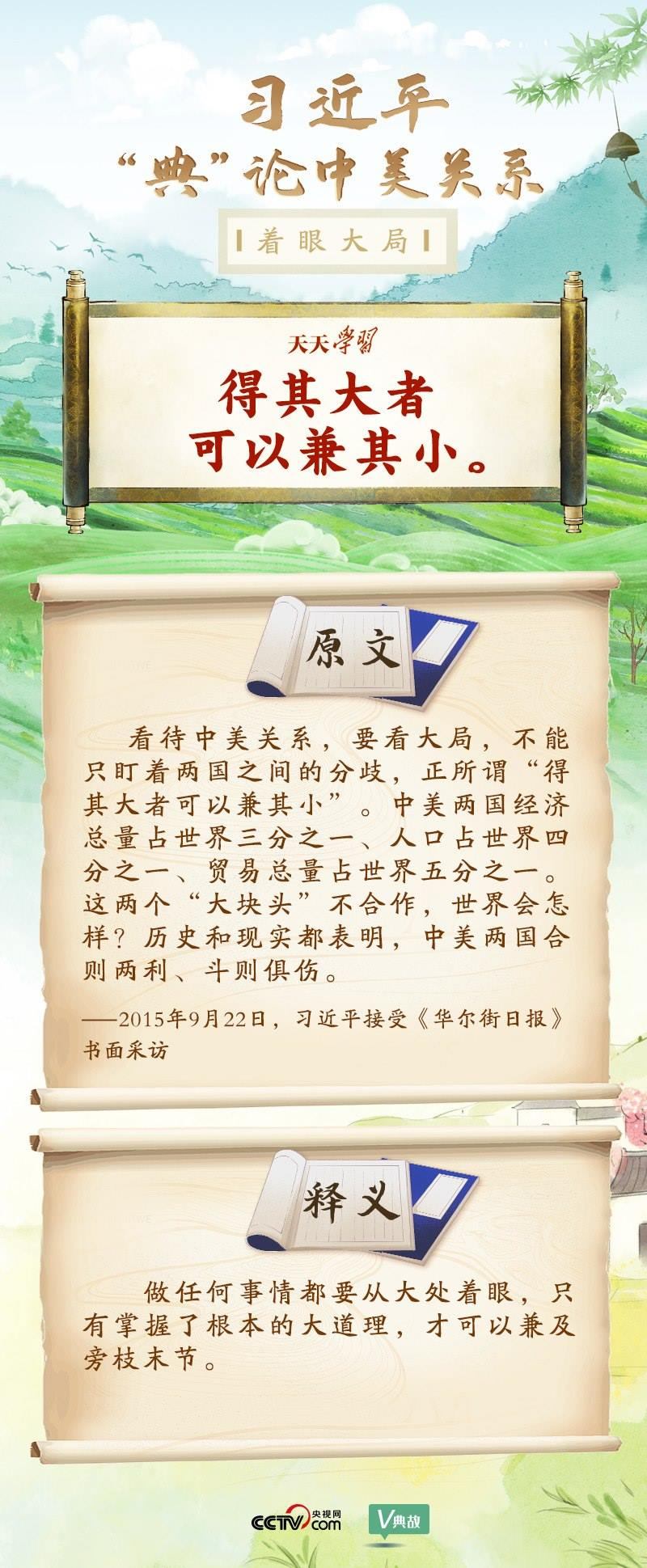黨的十八大以來,習近平主席就中美關系發(fā)表了一系列重要講話。他站在時代高度分析、研判中美關系現(xiàn)狀及發(fā)展趨勢,并引經據(jù)典為發(fā)展中美關系指出正確方向。這些論述蘊含深刻的戰(zhàn)略思維和政治智慧,具有重大現(xiàn)實意義和深遠歷史意義。央視網《天天學習》與您一起深刻領會。
