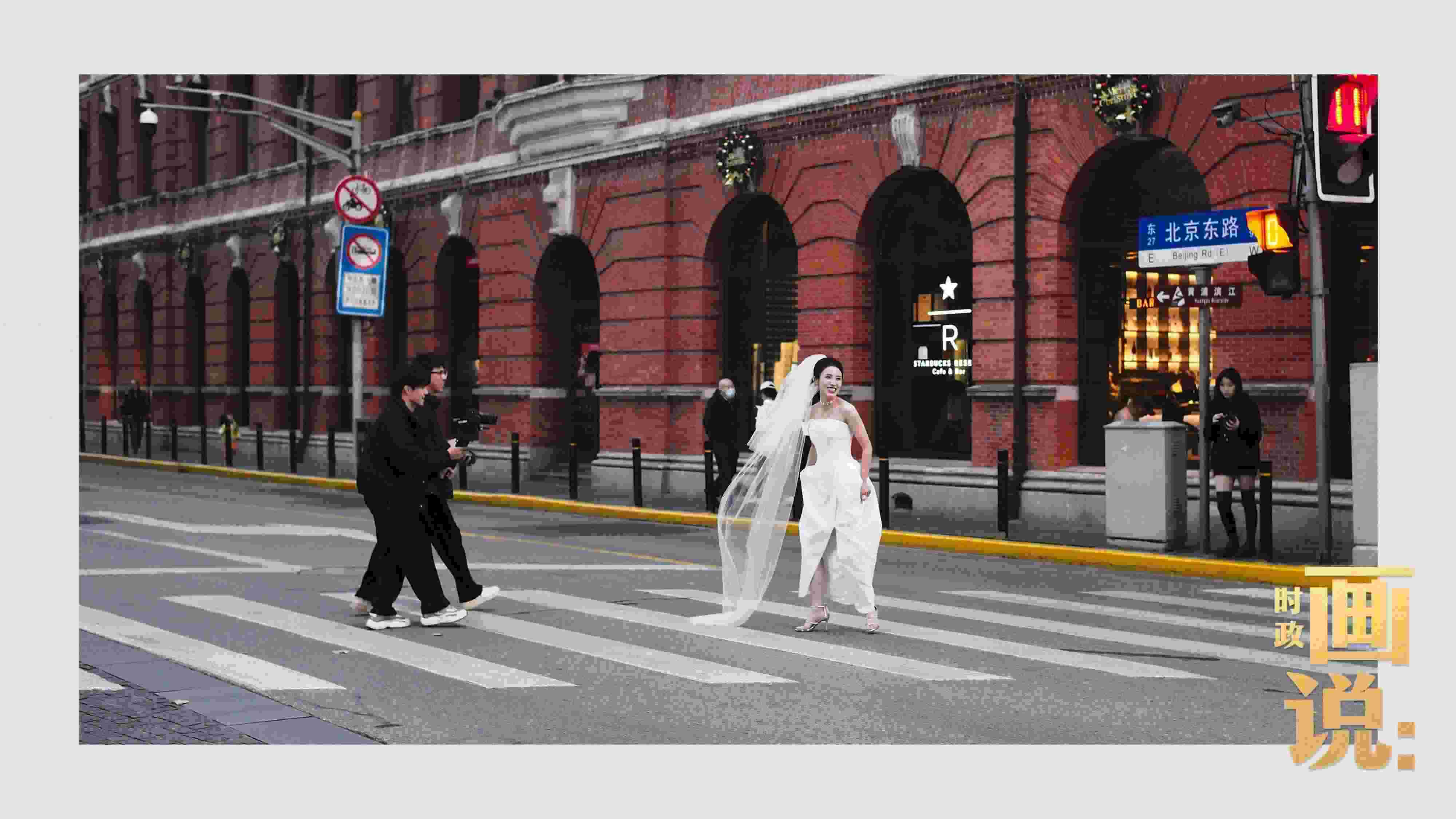 △身著婚紗的新娘穿行于古老的外灘街巷。包容、開放與時尚,是洋溢在這座城市中的別樣煙火氣息。黃浦區(qū),上海。