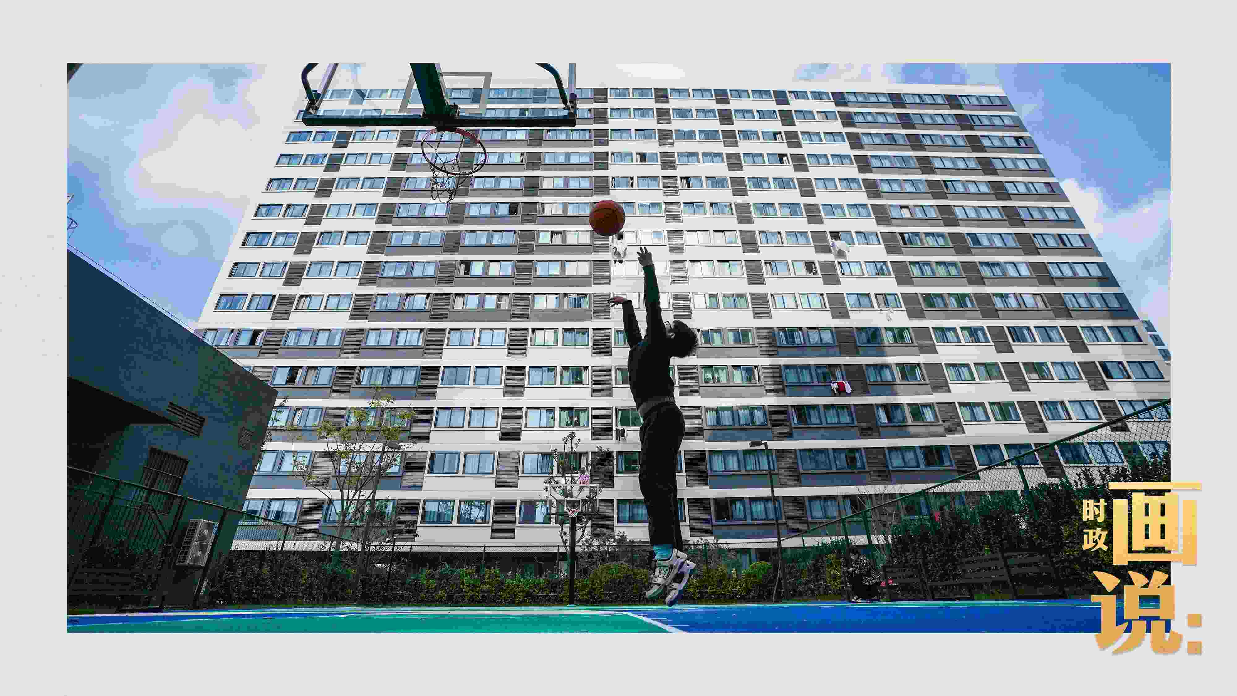 △社區(qū)籃球場上練習(xí)投籃的小男孩。閔行區(qū)新時代城市建設(shè)者管理者之家所在的社區(qū)是上海市首批大型保障性租賃住房項目之一,為許多來滬新市民、青年人和一線務(wù)工人員提供住房保障。閔行區(qū),上海。