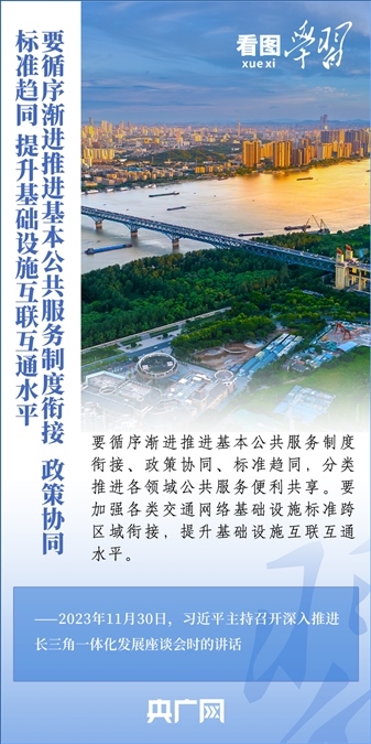 11月30日,習(xí)近平總書記在上海主持召開深入推進(jìn)長(zhǎng)三角一體化發(fā)展座談會(huì)并發(fā)表重要講話??倳洀?qiáng)調(diào),要完整、準(zhǔn)確、全面貫徹新發(fā)展理念,緊扣一體化和高質(zhì)量這兩個(gè)關(guān)鍵詞,樹立全球視野和戰(zhàn)略思維,堅(jiān)定不移深化改革、擴(kuò)大高水平開放,統(tǒng)籌科技創(chuàng)新和產(chǎn)業(yè)創(chuàng)新,統(tǒng)籌龍頭帶動(dòng)和各揚(yáng)所長(zhǎng),統(tǒng)籌硬件聯(lián)通和機(jī)制協(xié)同,統(tǒng)籌生態(tài)環(huán)保和經(jīng)濟(jì)發(fā)展,在推進(jìn)共同富裕上先行示范,在建設(shè)中華民族現(xiàn)代文明上積極探索,推動(dòng)長(zhǎng)三角一體化發(fā)展取得新的重大突破,在中國(guó)式現(xiàn)代化中走在前列,更好發(fā)揮先行探路、引領(lǐng)示范、輻射帶動(dòng)作用。一起來(lái)學(xué)習(xí)!