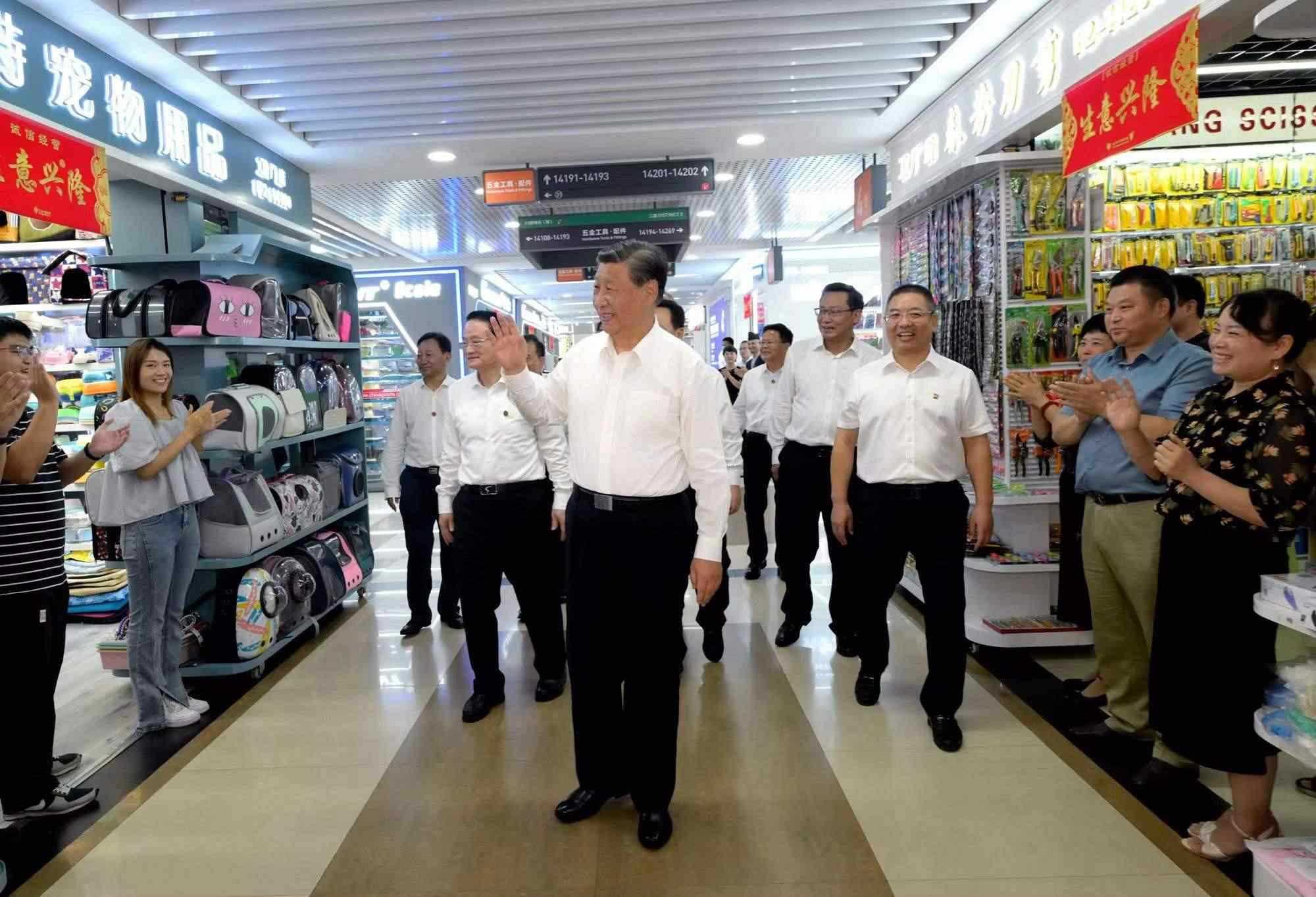 △2023年9月20日,習近平總書記在浙江義烏國際商貿(mào)城考察時,同商戶親切交流。