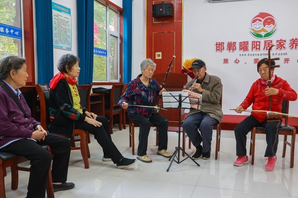 圖為河北省邯鄲市邯山區(qū)曜陽養(yǎng)老服務(wù)中心內(nèi),老人在學習樂器演奏。新華社記者趙鴻宇 攝
