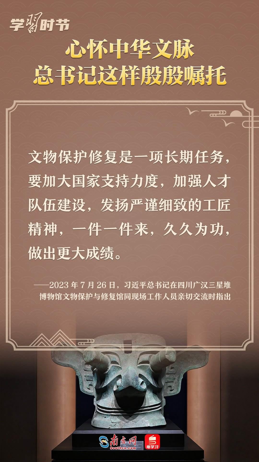 習(xí)近平總書記強調(diào),只有全面深入了解中華文明的歷史,才能更有效地推動中華優(yōu)秀傳統(tǒng)文化創(chuàng)造性轉(zhuǎn)化、創(chuàng)新性發(fā)展,更有力地推進中國特色社會主義文化建設(shè),建設(shè)中華民族現(xiàn)代文明。回望2023,總書記多次就中華文化傳承發(fā)展作出重要闡述。讓我們一起學(xué)習(xí),一同賡續(xù)歷史文脈、譜寫當(dāng)代華章。