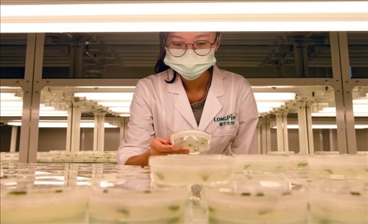 在三亞崖州灣科技城,種業(yè)科研人員在開(kāi)展科研工作(2021年11月25日攝)。新華社記者楊冠宇 攝