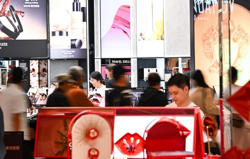 2023年10月28日,消費(fèi)者在位于海南省海口市的??趪?guó)際免稅城內(nèi)購(gòu)物。新華社記者楊冠宇 攝