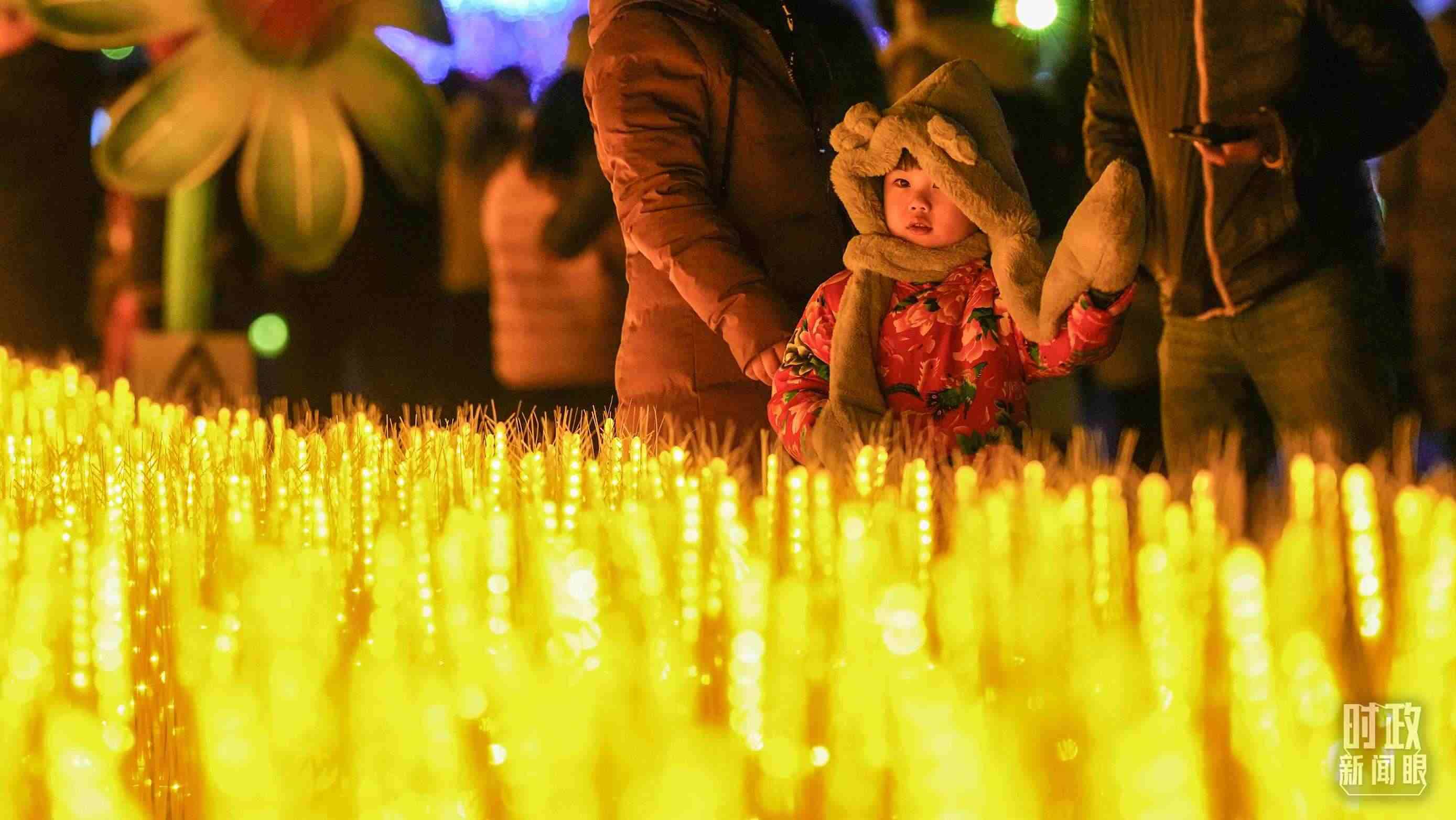 △夜幕降臨,天津市民紛紛來(lái)到楊柳青鎮(zhèn)觀花燈、迎新春。(總臺(tái)國(guó)廣記者李晉拍攝)