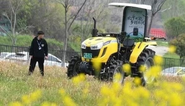 ▲位于光谷北斗大廈的武漢依迅北斗時(shí)空技術(shù)股份有限公司園區(qū)內(nèi),安裝了北斗高精度農(nóng)機(jī)自動(dòng)駕駛終端的拖拉機(jī)正在進(jìn)行測(cè)試