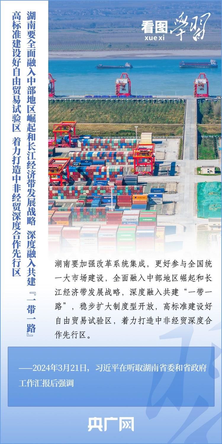 3月18日至21日,習(xí)近平總書記考察湖南長沙、常德等地,深入學(xué)校、企業(yè)、歷史文化街區(qū)、鄉(xiāng)村等進行調(diào)研??倳洀娬{(diào),湖南要牢牢把握自身在構(gòu)建新發(fā)展格局中的戰(zhàn)略定位,堅持穩(wěn)中求進工作總基調(diào),堅持高質(zhì)量發(fā)展不動搖,堅持改革創(chuàng)新、求真務(wù)實,在打造國家重要先進制造業(yè)高地、具有核心競爭力的科技創(chuàng)新高地、內(nèi)陸地區(qū)改革開放高地上持續(xù)用力,在推動中部地區(qū)崛起和長江經(jīng)濟帶發(fā)展中奮勇爭先,奮力譜寫中國式現(xiàn)代化湖南篇章。一起來學(xué)習(xí)!