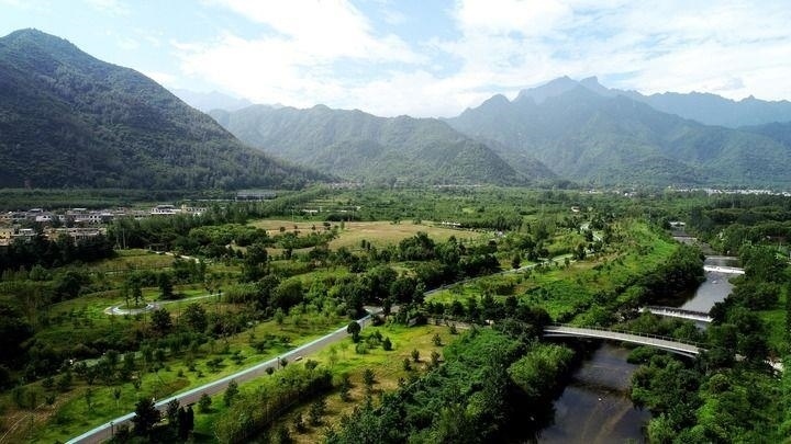 △陜西省西安市長安區(qū)秦嶺違建別墅“群賢別業(yè)”拆除后建設(shè)的秦嶺和諧森林公園。