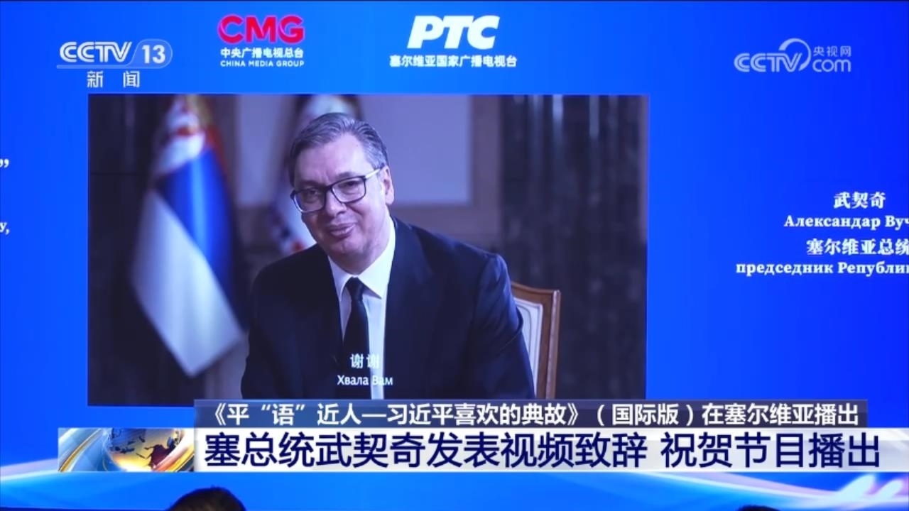 央視網(wǎng)消息:在中國國家主席習近平對塞爾維亞進行國事訪問之際,當?shù)貢r間5月7日,由中國中央廣播電視總臺制作的《平“語”近人——習近平喜歡的典故》(國際版)在貝爾格萊德上線播出。塞爾維亞總統(tǒng)武契奇向活動視頻致辭,祝賀節(jié)目在塞爾維亞播出。