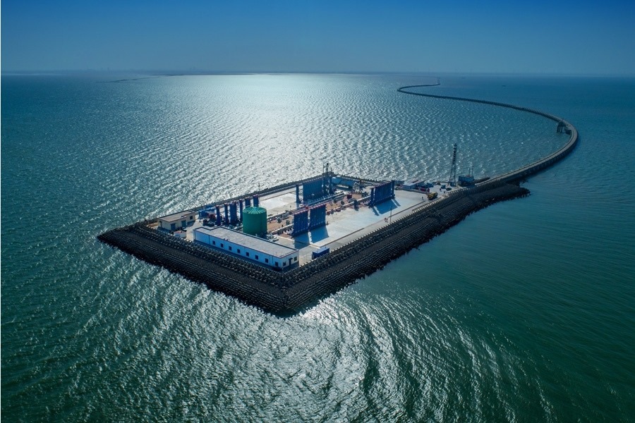 這是勝利油田青東5采油平臺(tái)(無人機(jī)照片)。新華社發(fā)