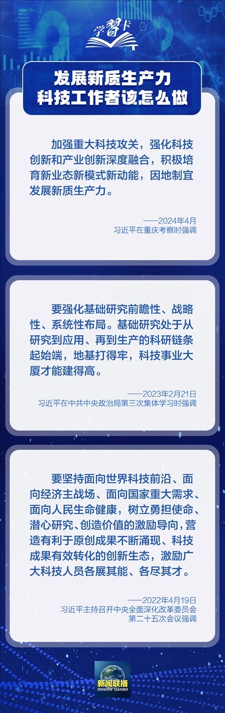 2024年5月30日是第八個“全國科技工作者日”。實現(xiàn)科技自立自強、建設世界科技強國,廣大科技工作者責任重大、使命光榮。培育發(fā)展新質(zhì)生產(chǎn)力的新動能,廣大科技工作者可以怎么做?習近平總書記的一系列論述指明了方向。一起學習↓↓↓