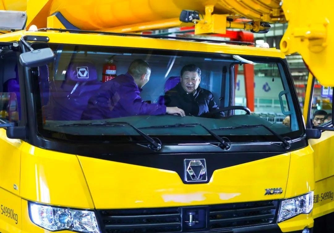 △2017年12月12日,習(xí)近平總書記在江蘇徐州徐工集團(tuán)坐進(jìn)剛下線的XCA220型全地面起重機(jī)駕駛室,向技術(shù)人員詳細(xì)詢問起重機(jī)的性能、產(chǎn)量、價(jià)格等。