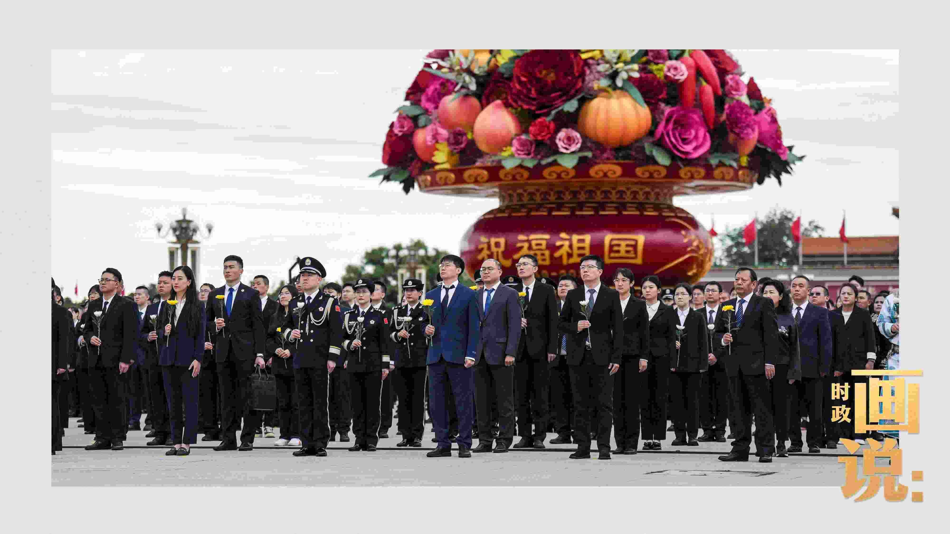 △天安門廣場(chǎng)中央,“祝福祖國(guó)”巨型花籃表達(dá)著對(duì)國(guó)家繁榮富強(qiáng)的美好祝福。