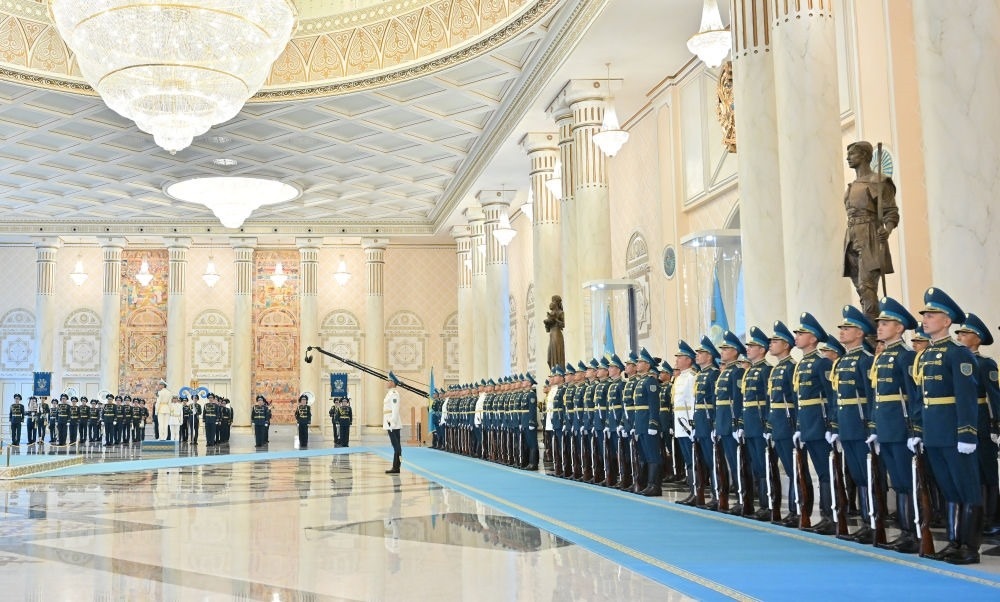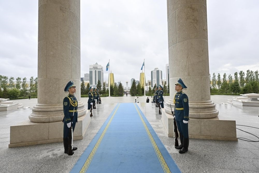 當(dāng)?shù)貢r(shí)間3日,國家主席習(xí)近平在阿斯塔納出席哈薩克斯坦總統(tǒng)托卡耶夫舉行的歡迎儀式。