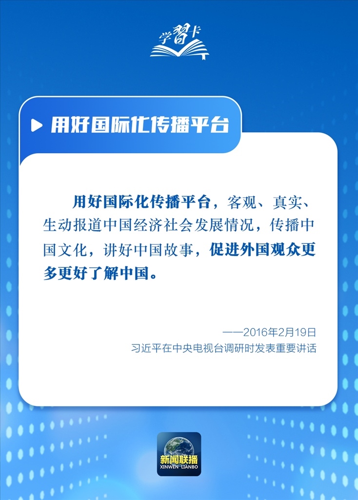 習(xí)近平總書(shū)記高度重視國(guó)際傳播能力建設(shè),指出當(dāng)前外宣工作處于歷史最好時(shí)期,同時(shí)也面臨最大壓力,強(qiáng)調(diào)要全面加強(qiáng)和改進(jìn)國(guó)際傳播工作,深化文明交流互鑒,形成同我國(guó)綜合國(guó)力和國(guó)際地位相匹配的國(guó)際話語(yǔ)權(quán),增強(qiáng)中華文明傳播力影響力。一起學(xué)習(xí)↓