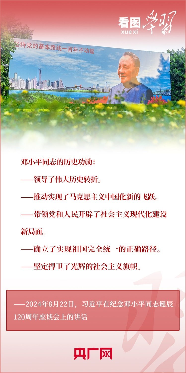 8月22日,習(xí)近平總書記在紀(jì)念鄧小平同志誕辰120周年座談會(huì)上發(fā)表重要講話指出,鄧小平同志的歷史功勛是全方位的、開創(chuàng)性的,對中國和世界的影響是深刻的、長遠(yuǎn)的??倳洀?qiáng)調(diào),對鄧小平同志最好的紀(jì)念,就是把他開創(chuàng)的中國特色社會(huì)主義事業(yè)繼續(xù)推向前進(jìn)。我們要緊緊圍繞以中國式現(xiàn)代化全面推進(jìn)強(qiáng)國建設(shè)、民族復(fù)興偉業(yè)這個(gè)中心任務(wù),繼往開來,奮發(fā)進(jìn)取。一起來學(xué)習(xí)!