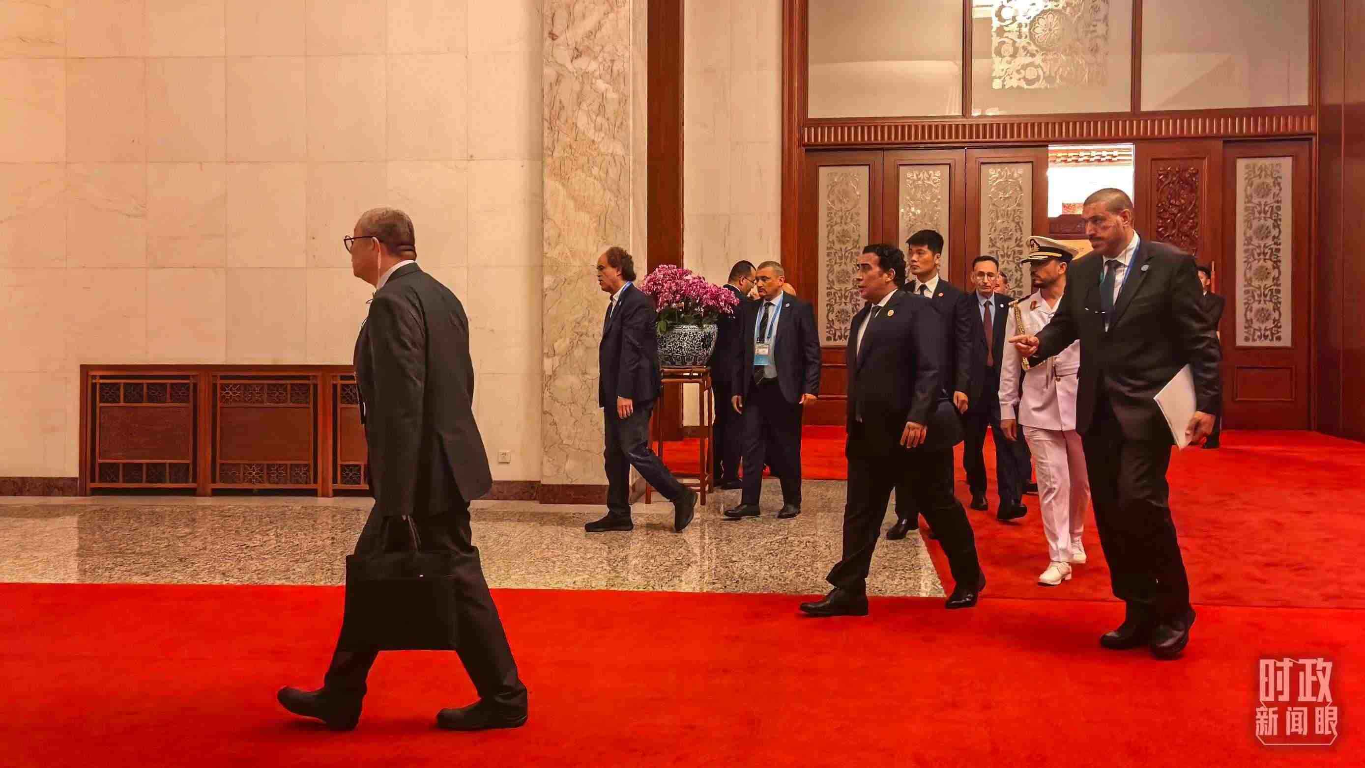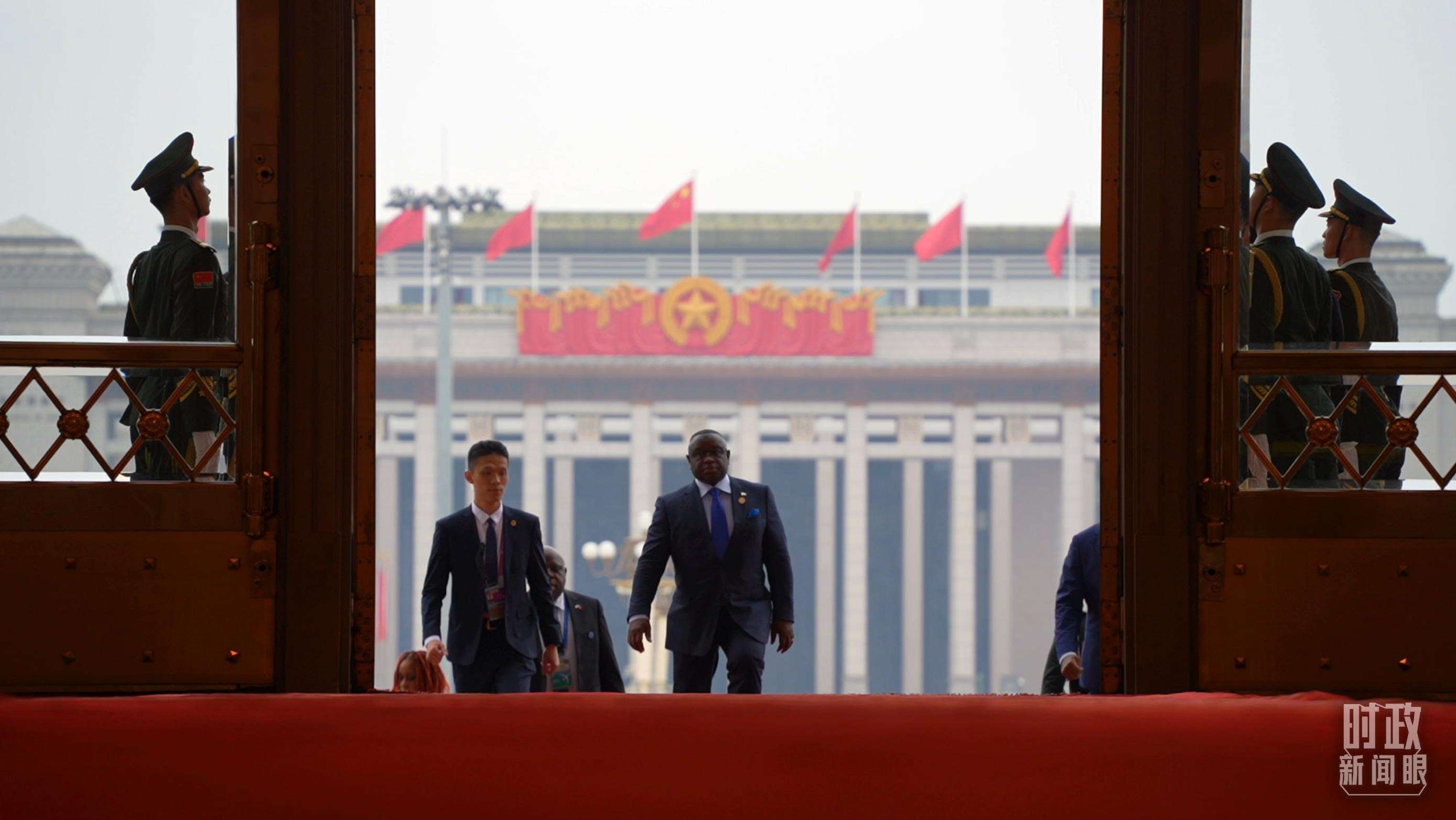△非洲國(guó)家領(lǐng)導(dǎo)人步入人民大會(huì)堂。(總臺(tái)央視記者趙怡彬拍攝)