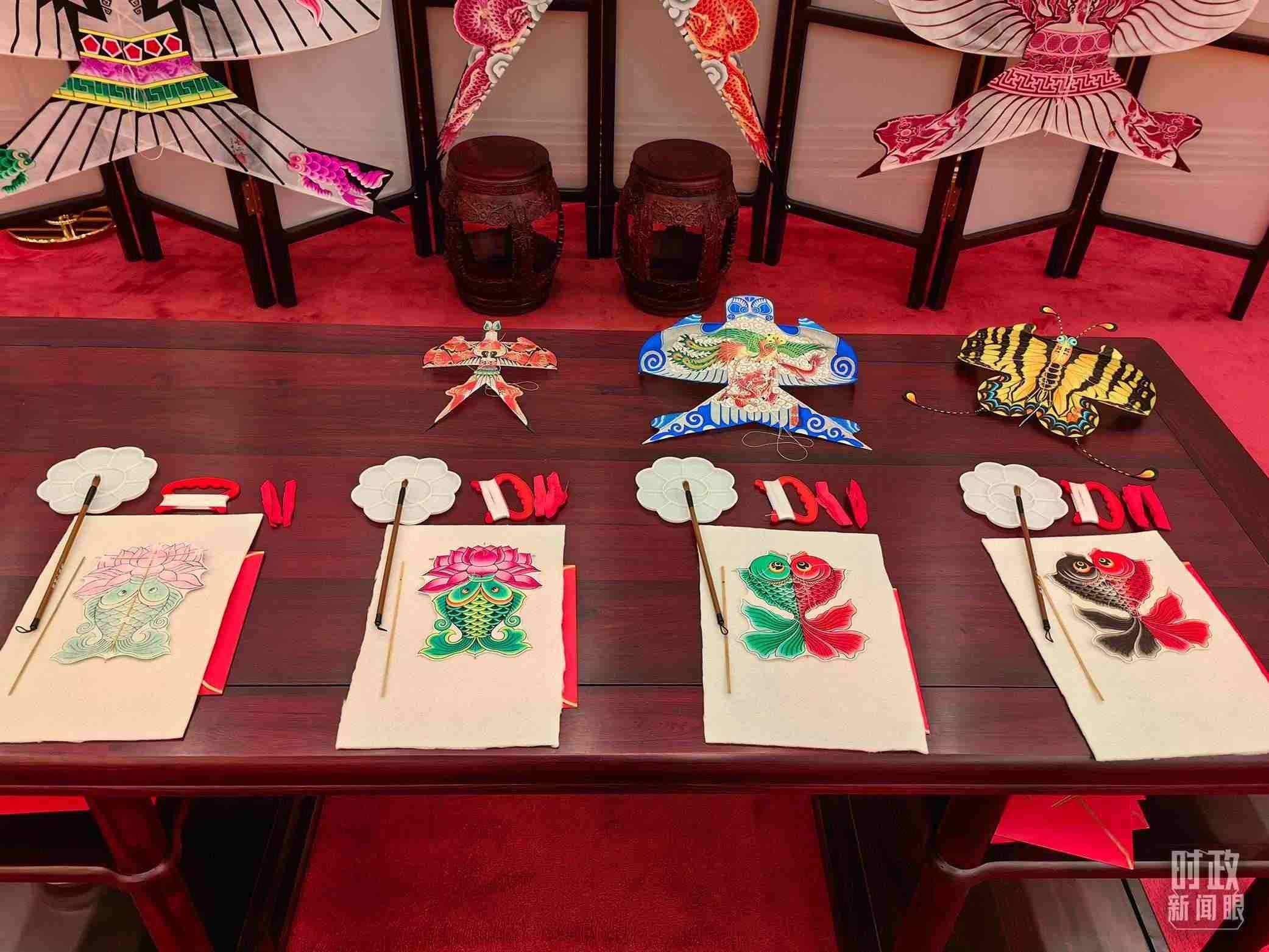 △外賓休息室內(nèi)的非遺展示。(總臺(tái)央視記者王曉東、郭鴻拍攝)