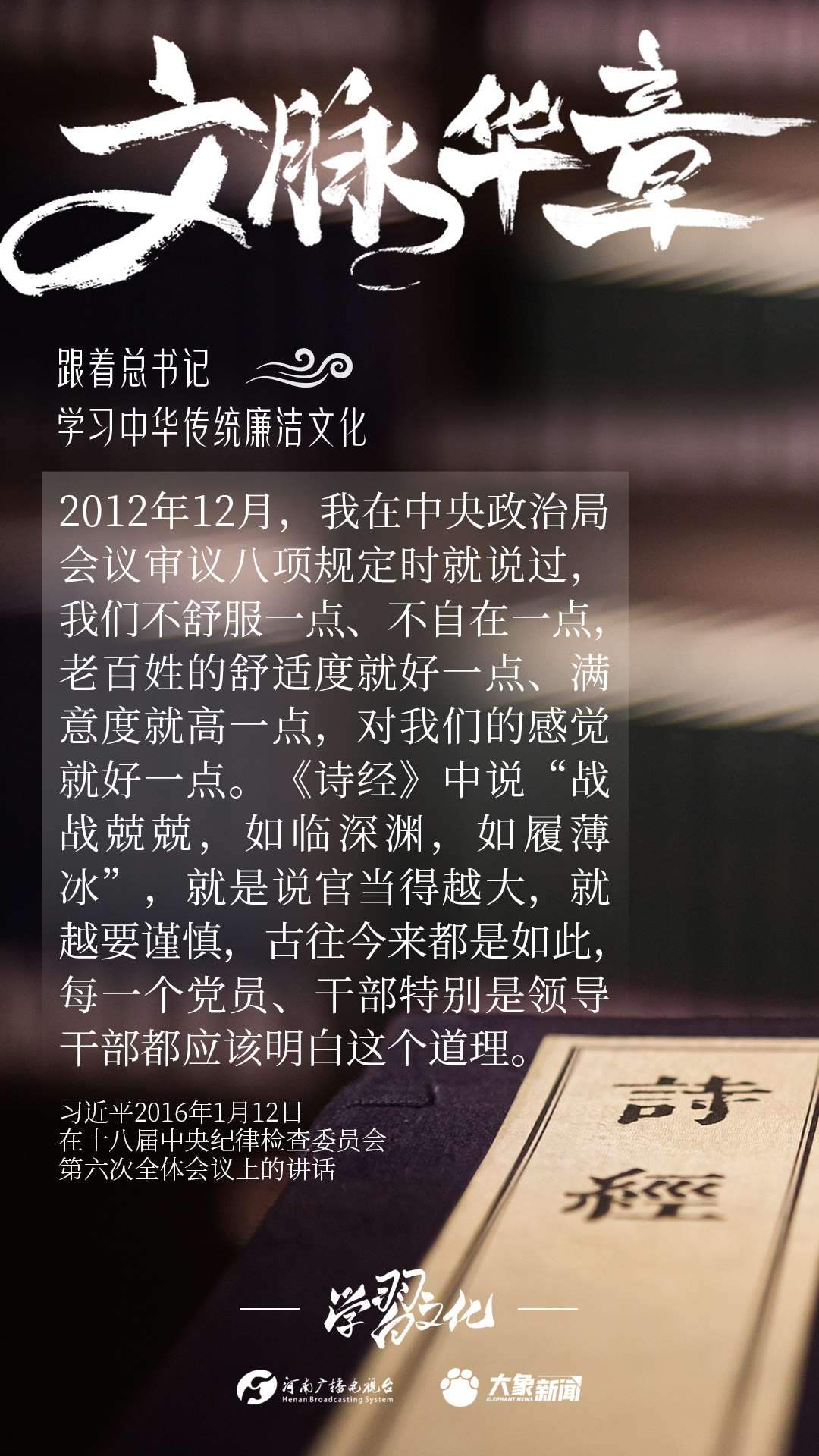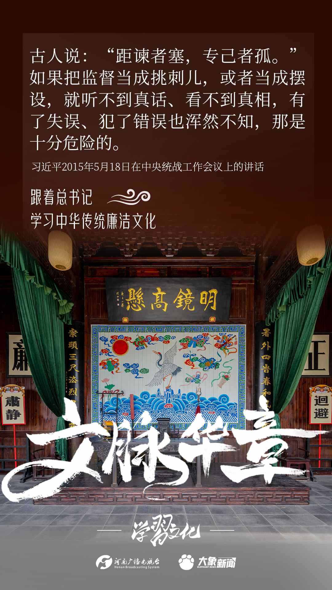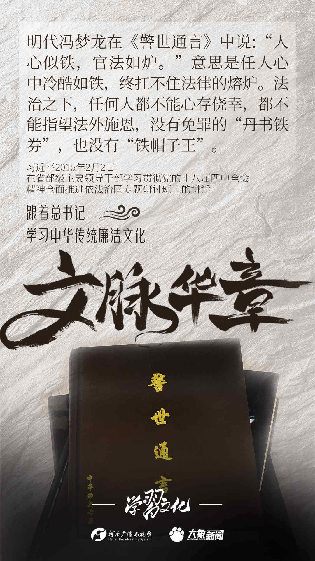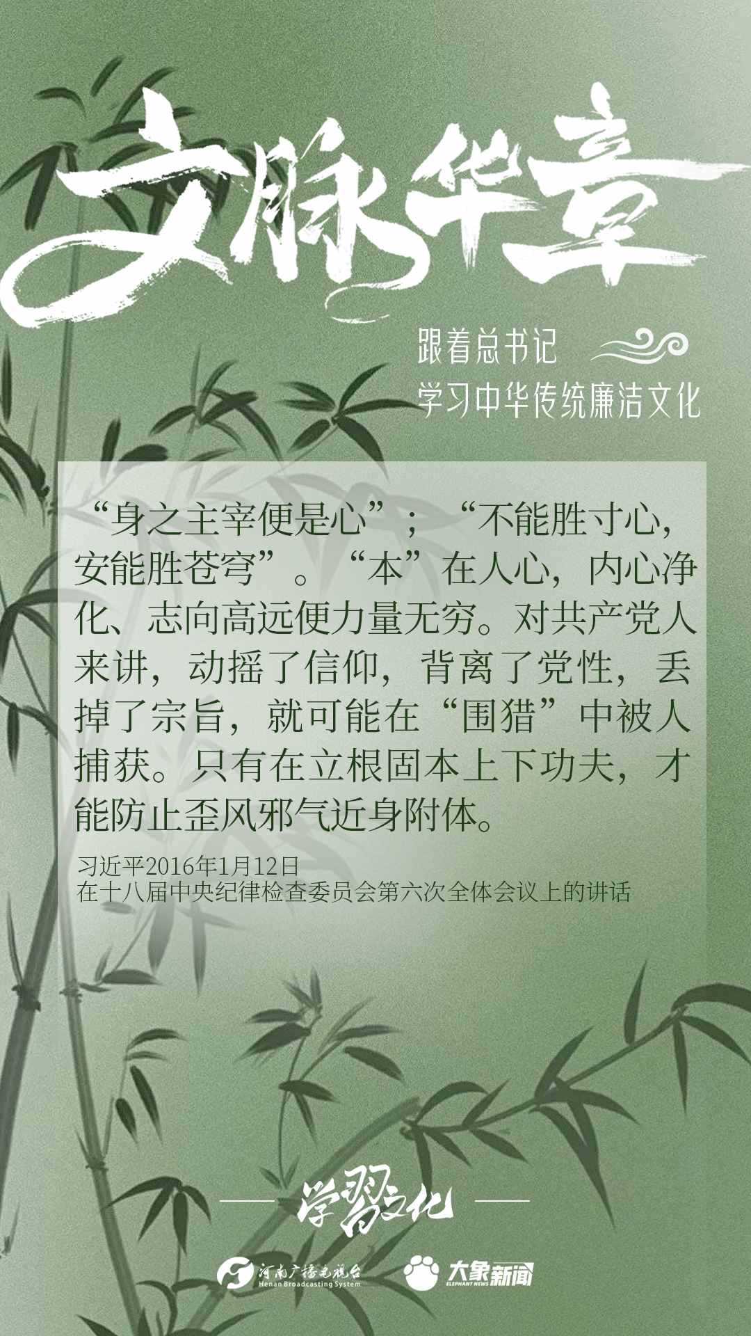 中華優(yōu)秀傳統(tǒng)文化蘊含著豐富的廉潔文化,習(xí)近平總書記曾指出:沒有中華優(yōu)秀傳統(tǒng)文化、革命文化、社會主義先進文化的底蘊和滋養(yǎng),信仰信念就難以深沉而執(zhí)著。總書記常常引經(jīng)據(jù)典,教育引導(dǎo)廣大黨員干部正心修身,涵養(yǎng)文化,守住為政之本。大象新聞分五期為您梳理,我們一起跟著總書記學(xué)習(xí)中華傳統(tǒng)廉潔文化。今天推出第四期。