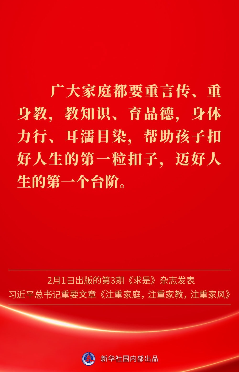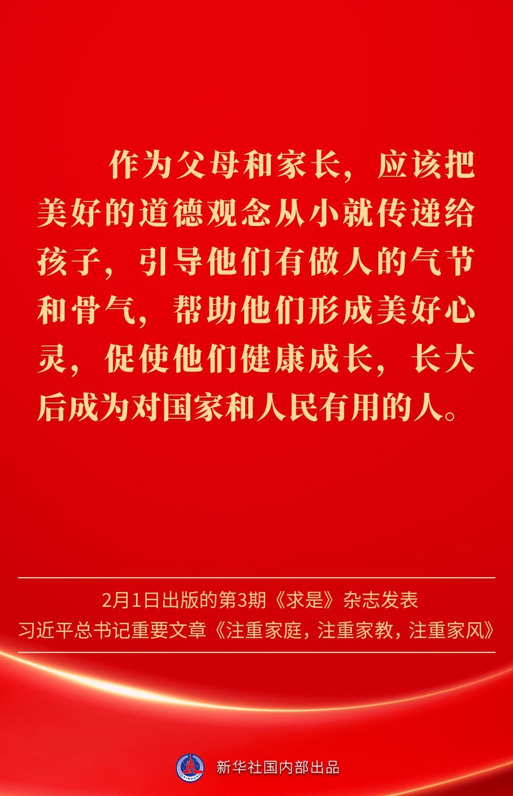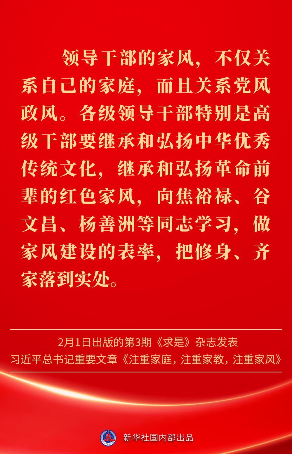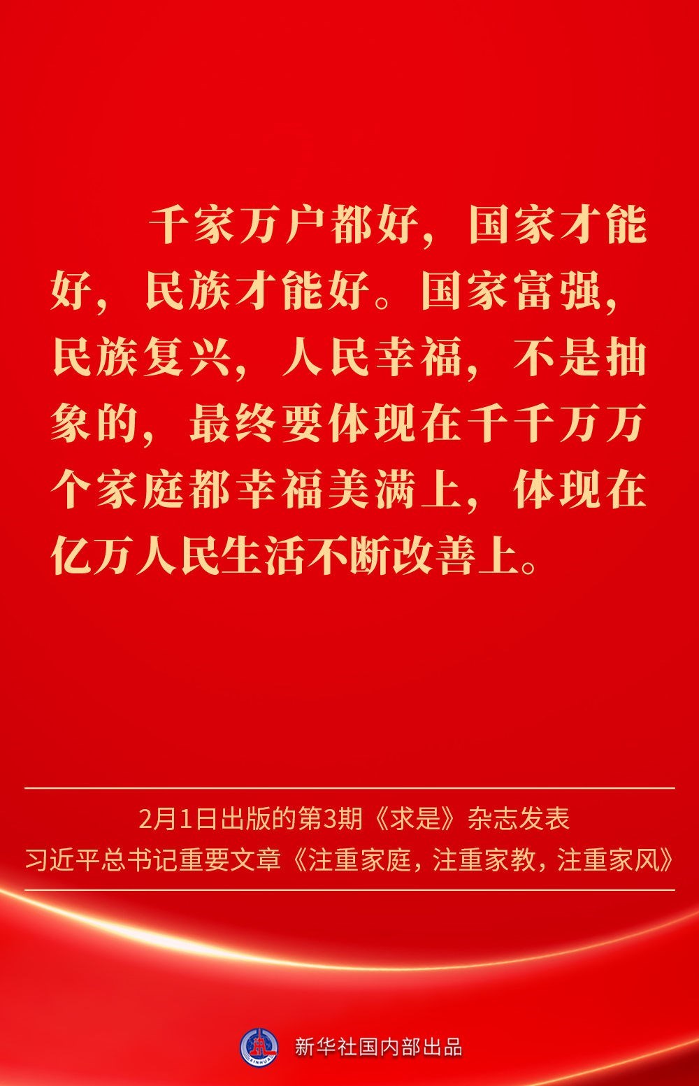 萬家團圓共慶新春佳節(jié)之際,2月1日出版的第3期《求是》雜志發(fā)表習(xí)近平總書記重要文章《注重家庭,注重家教,注重家風》。為什么要注重家庭、家教、家風?如何做好家庭文明建設(shè)?習(xí)近平總書記這樣闡述——