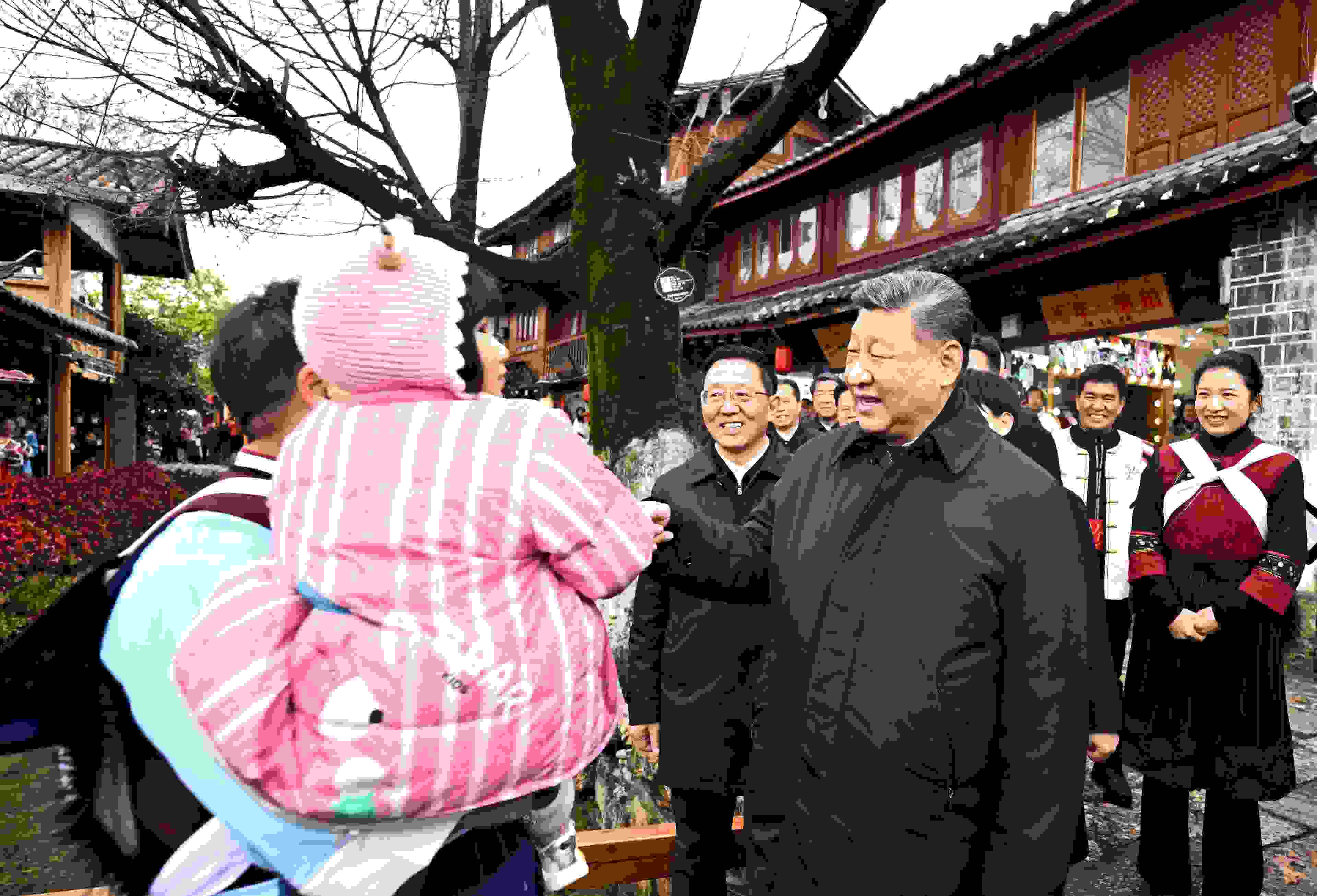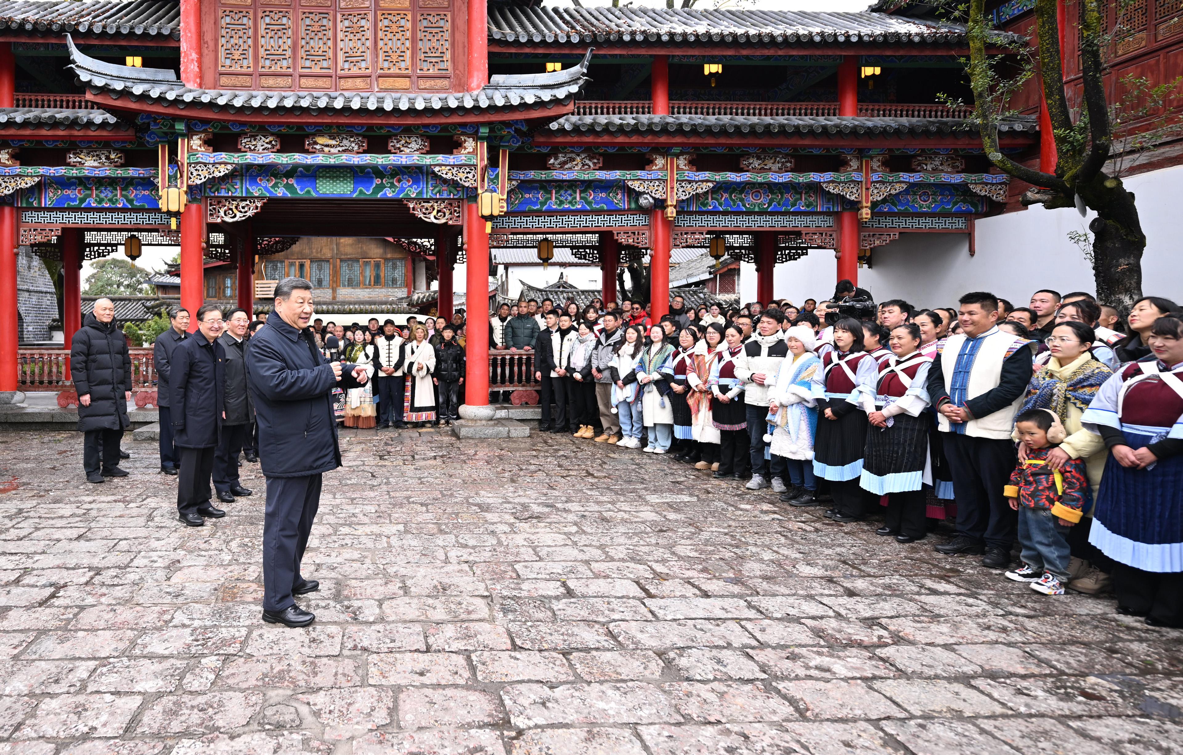 習(xí)近平總書記19日下午來到云南麗江古城,沿著石板路邊走邊看。當(dāng)?shù)鼐用窈脱赝居慰褪譄崆榈叵蚩倳泦柡?,?xí)近平不時停下腳步同大家親切交流。習(xí)近平說,這里的文化、風(fēng)光、民俗都非常吸引人,文旅融合促進(jìn)了經(jīng)濟發(fā)展。文旅產(chǎn)業(yè)要走一條持續(xù)、健康的發(fā)展之路。希望你們的生活幸福安康,就像納西族的大姓“和”姓一樣,和和美美。