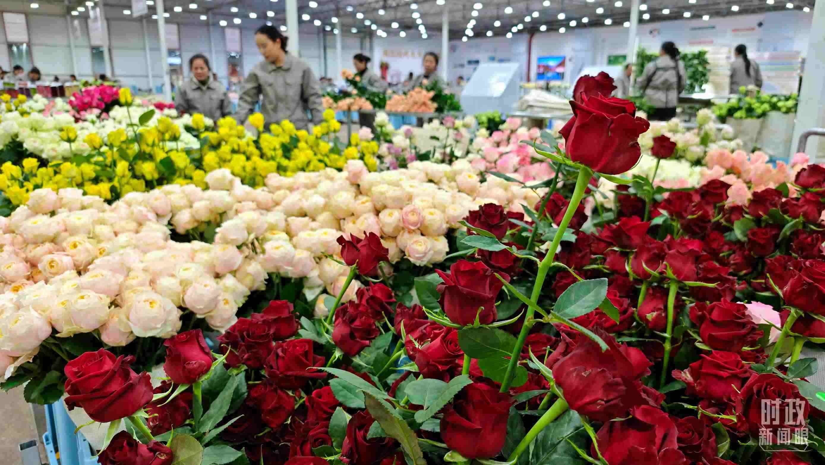 △工人正在對采摘下來的鮮花進行整理、分類。(總臺央視記者邢彬拍攝)