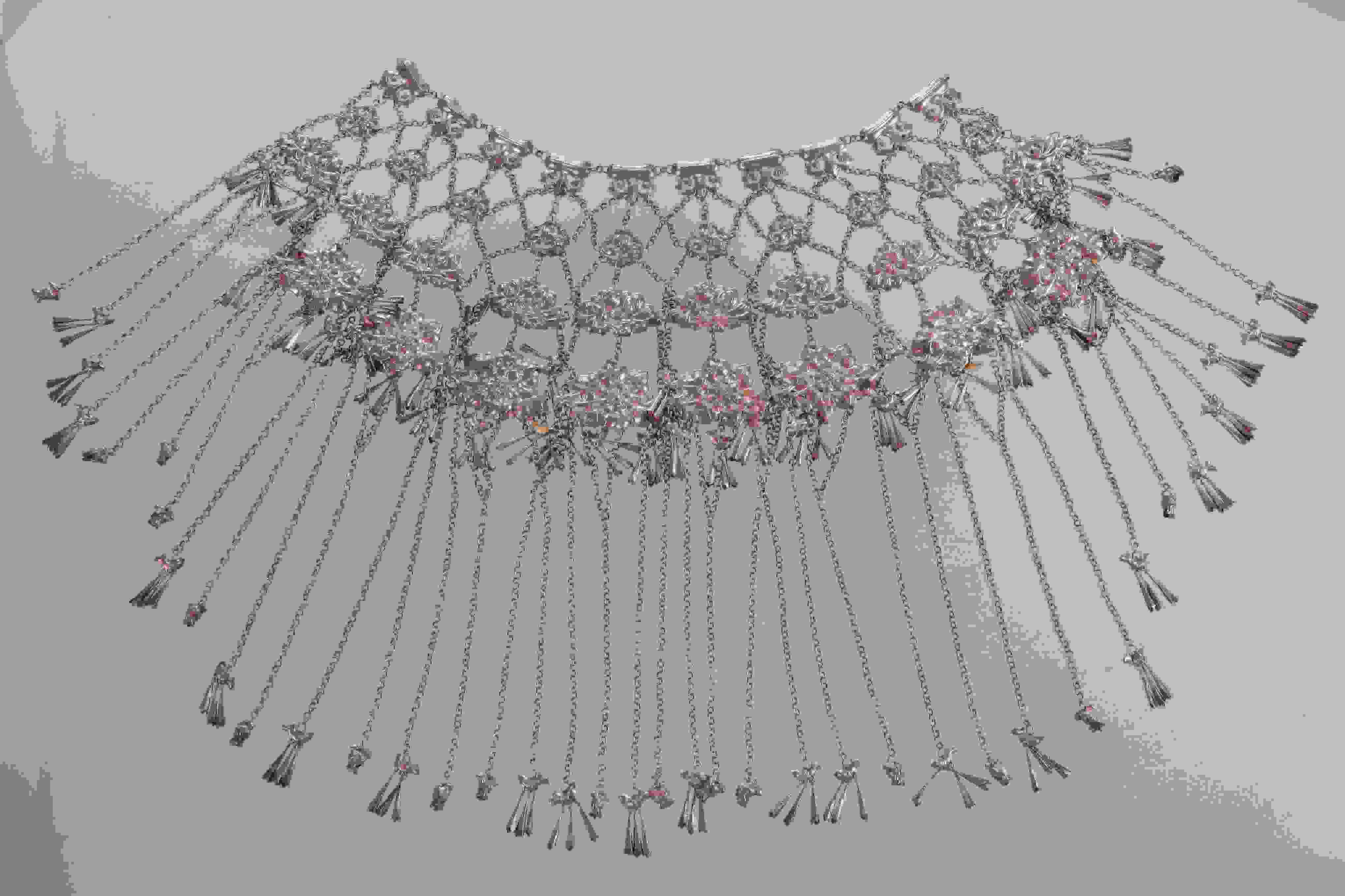 花草 、動物等吉祥圖案的4排銀牌相綴連