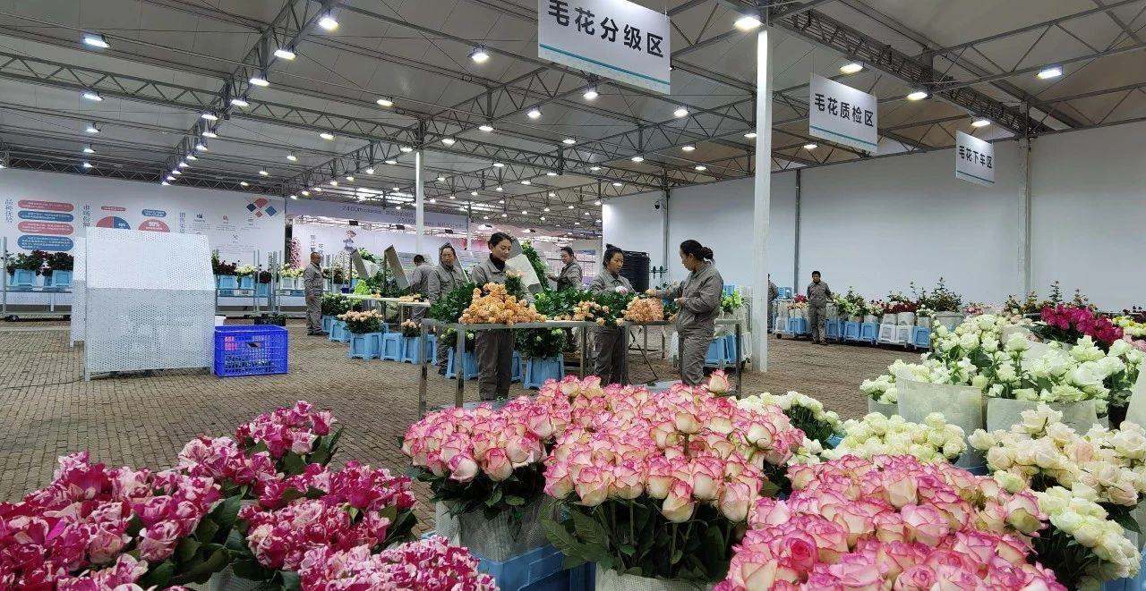 △云南麗江現(xiàn)代花卉產(chǎn)業(yè)園內,工人正在分類整理鮮花。