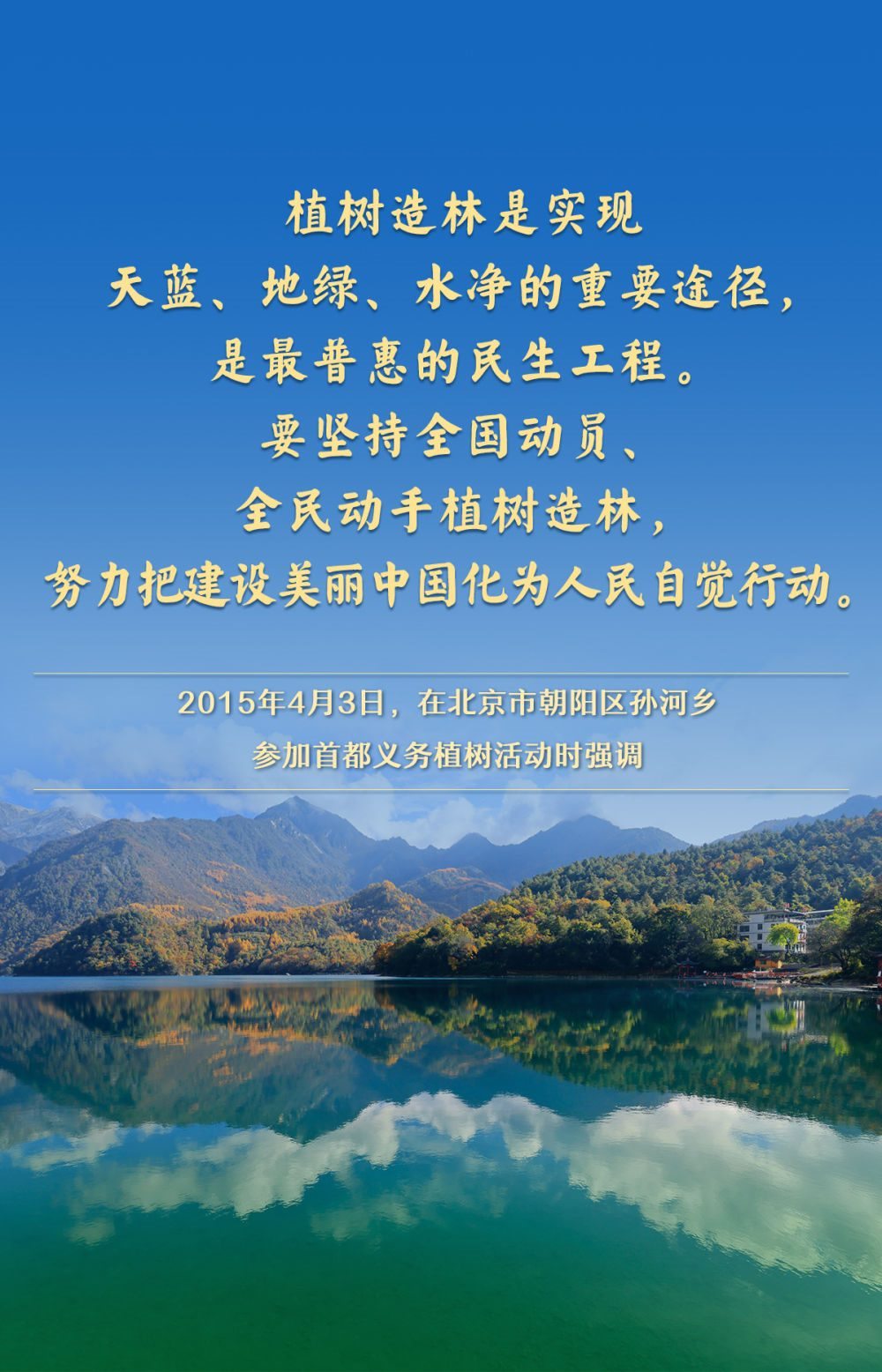 黨的十八大以來(lái),習(xí)近平總書記高度重視國(guó)土綠化,每年都同干部群眾一起參加首都義務(wù)植樹,并作出一系列重要論述,為推進(jìn)美麗中國(guó)建設(shè)、實(shí)現(xiàn)人與自然和諧共生的現(xiàn)代化指明方向。