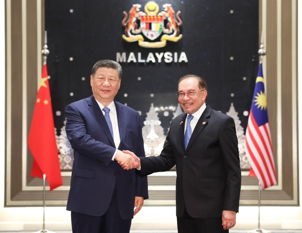 4月16日下午,習近平同馬來西亞總理安瓦爾在布特拉加亞總理官邸舉行會談。