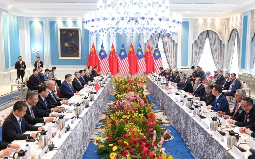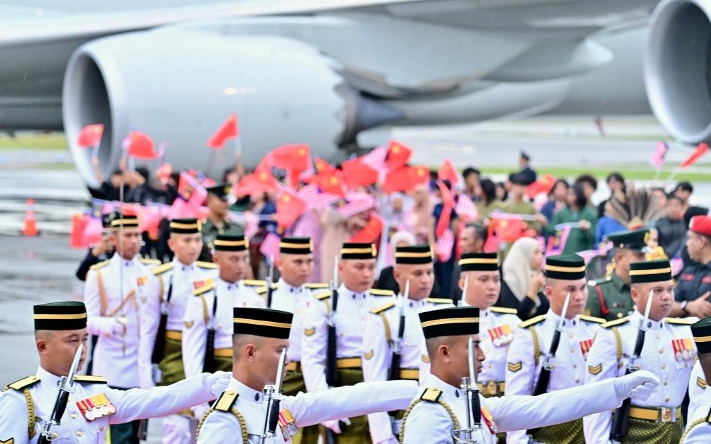 當?shù)貢r間4月15日晚,國家主席習近平乘專機抵達吉隆坡,應馬來西亞最高元首易卜拉欣邀請,對馬來西亞進行國事訪問。