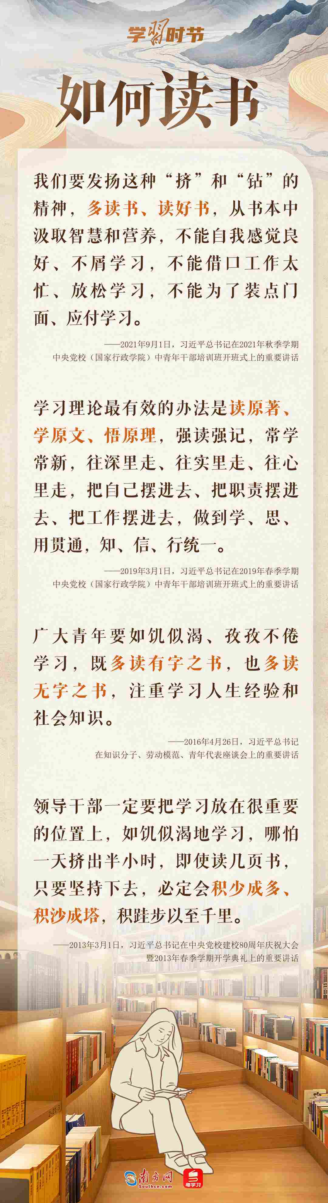 4月23日是第30個世界讀書日。我們?yōu)楹我x書?應(yīng)如何讀書?讀些什么書?讓我們跟隨總書記的“讀書指南”,一起“愛讀書、讀好書、善讀書”。