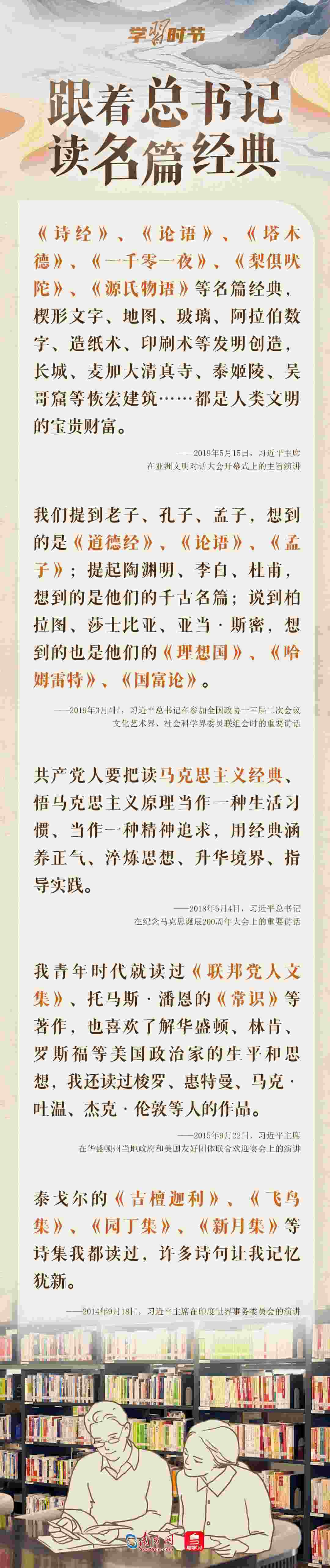 書籍是人類知識的載體,是人類智慧的結(jié)晶,是人類進(jìn)步的階梯。習(xí)近平總書記酷愛讀書,多次講述和書籍的不解之緣,分享讀書感悟。他說:“我愛好挺多,最大的愛好是讀書,讀書已成為我的一種生活方式。”