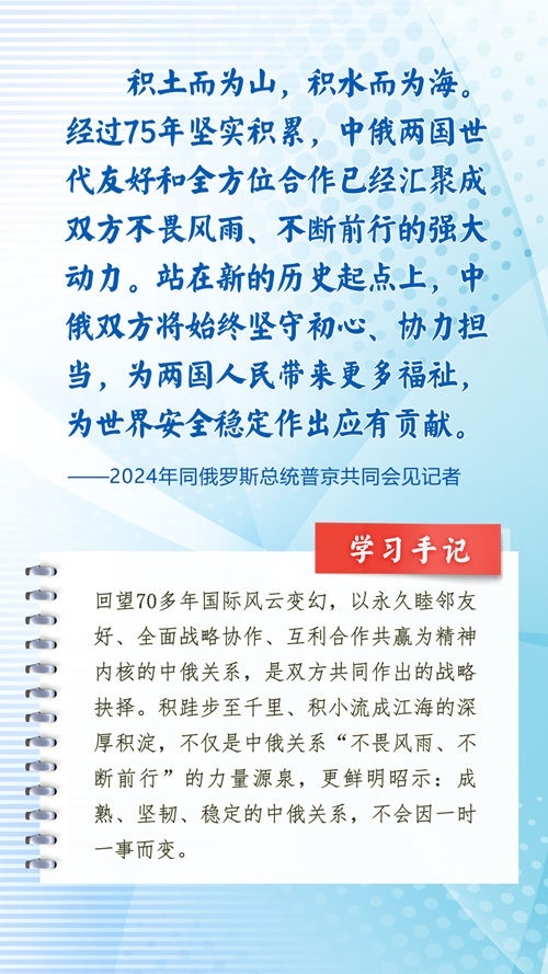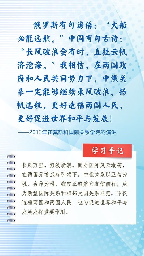 我們一起來學(xué)習(xí)品讀這些飽含哲思的論述,從中感悟新時代中俄關(guān)系在復(fù)雜的外部環(huán)境下堅毅前行之道,感悟習(xí)近平主席作為大黨大國領(lǐng)袖、世界級領(lǐng)袖的時代擔(dān)當(dāng)與天下情懷。