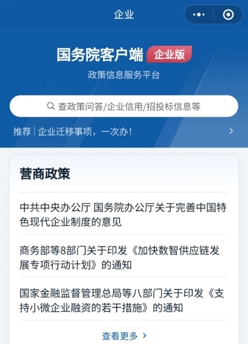 “國(guó)務(wù)院客戶端小程序企業(yè)版”