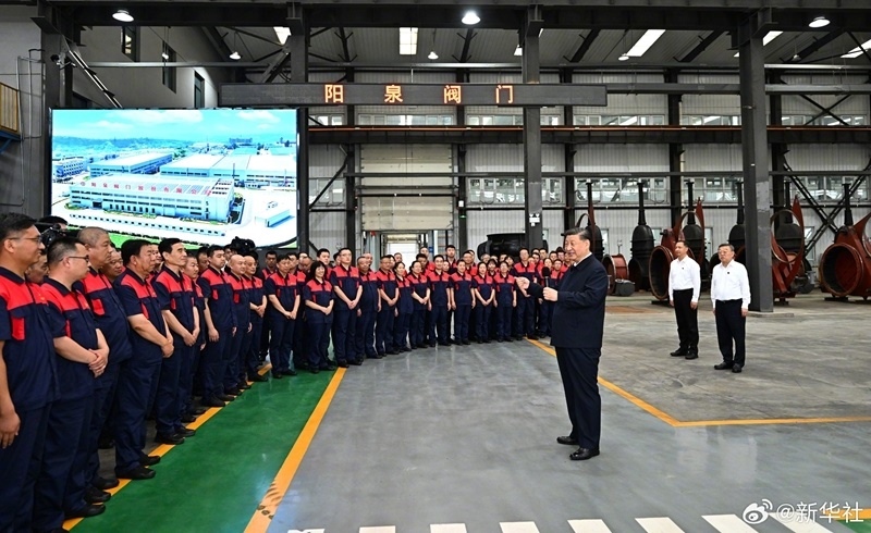 7日下午,習近平總書記在陽泉閥門股份有限公司考察。他察看企業(yè)生產(chǎn)車間和產(chǎn)品展示,同現(xiàn)場工人親切交談,了解山西加快產(chǎn)業(yè)轉(zhuǎn)型升級、推動高質(zhì)量發(fā)展等情況。(文字記者:張曉松、朱基釵;攝影記者:謝環(huán)馳、燕雁、翟健嵐)