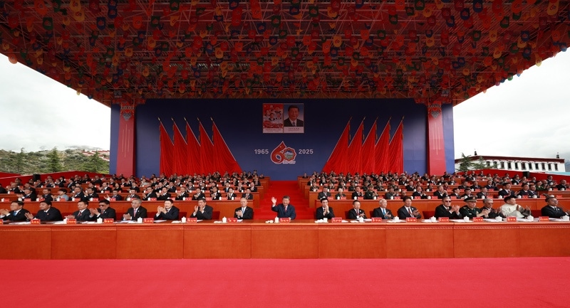 8月21日上午,西藏各族各界干部群眾約2萬人歡聚拉薩市布達(dá)拉宮廣場,熱烈慶祝西藏自治區(qū)成立60周年。中共中央總書記、國家主席、中央軍委主席習(xí)近平出席慶祝大會(huì)。王滬寧、蔡奇出席大會(huì)。