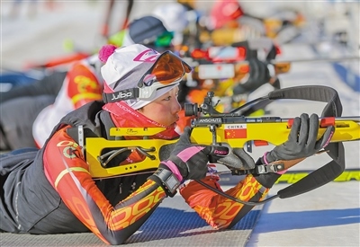 內蒙古冬季兩項運動員加緊訓練?! ?/p>