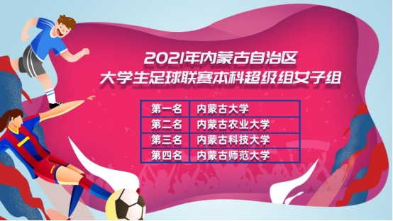 近年來,內(nèi)蒙古校園足球蓬勃發(fā)展,多彩的校園足球賽事與活動(dòng)呈現(xiàn)出不斷發(fā)展的生機(jī)與活力。作為全區(qū)舉辦規(guī)模最大、參賽人數(shù)最多、覆蓋面最廣、專為大學(xué)生量身打造的校園足球賽事,大學(xué)生足球聯(lián)賽成為我區(qū)各高校學(xué)子充分展示青春活力與頑強(qiáng)斗志的重要舞臺(tái)。2021年聯(lián)賽中,共設(shè)高職校園、高職超級(jí)、本科校園和本科超級(jí)組(男、女)共7個(gè)組別。錫林郭勒職業(yè)學(xué)院、包頭輕工職業(yè)技術(shù)學(xué)院、呼和浩特民族學(xué)院分別獲得高職校園男子組、女子組、超級(jí)男子組冠軍;內(nèi)蒙古農(nóng)業(yè)大學(xué)奪得本科校園男子、女子組冠軍;內(nèi)蒙古科技大學(xué)、內(nèi)蒙古大學(xué)分別奪得本科超級(jí)組男子、女子組冠軍。