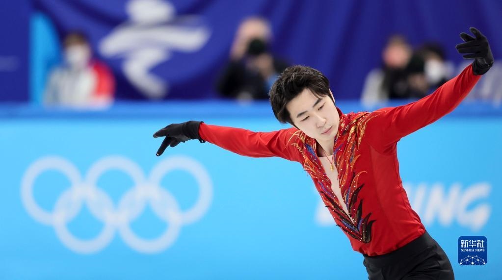 2月10日,中國(guó)隊(duì)選手金博洋在花樣滑冰男子單人滑自由滑比賽中。新華社記者蘭紅光攝