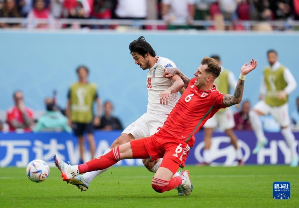 當(dāng)日,在卡塔爾多哈艾哈邁德·本·阿里體育場進行的2022卡塔爾世界杯足球賽B組比賽中,伊朗隊以2比0戰(zhàn)勝威爾士隊。