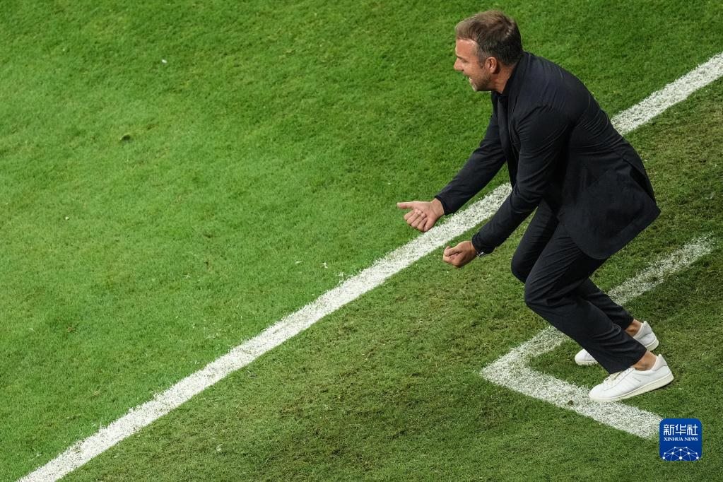 11月27日,德國(guó)隊(duì)主教練漢斯·弗利克在場(chǎng)邊指揮。