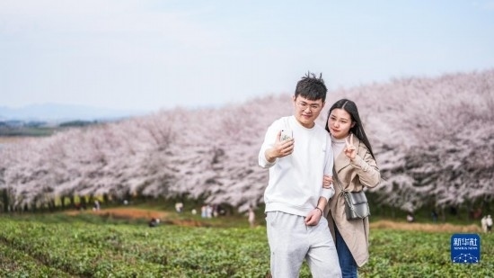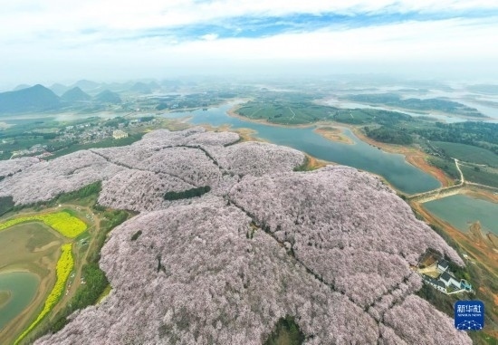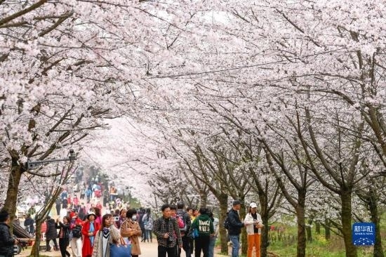 近日,貴州省貴安新區(qū)櫻花園內(nèi)的2.4萬(wàn)畝櫻花競(jìng)相綻放,如雪似霞,吸引游客前來(lái)賞花觀光。