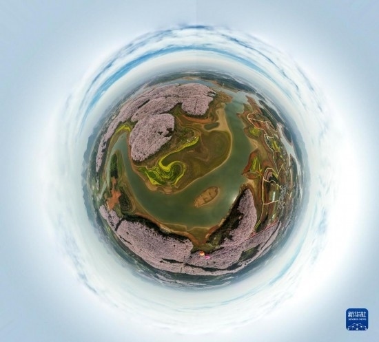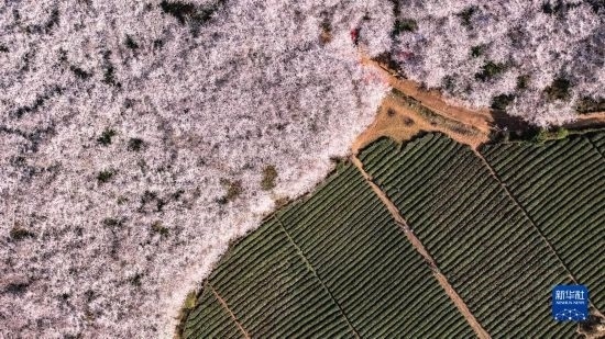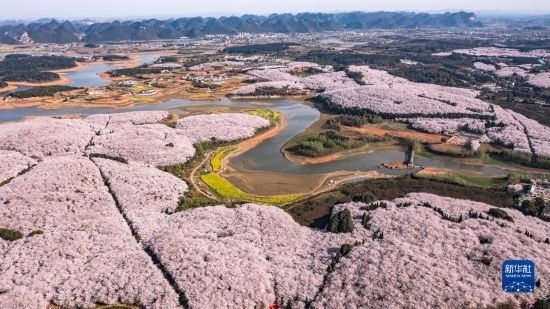 3月21日拍攝的貴州省貴安新區(qū)櫻花園(無(wú)人機(jī)照片)。
