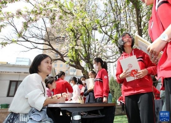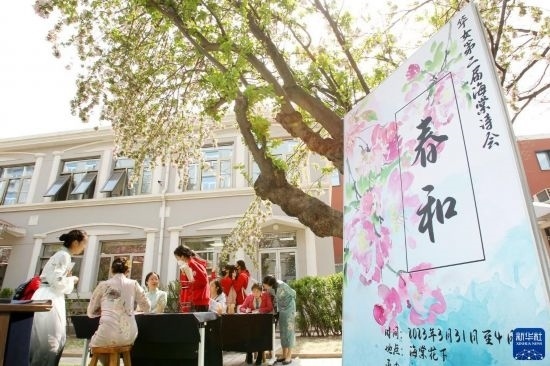 當日,北師大實驗華夏女子中學舉辦以“春和”為主題的第二屆“海棠詩會”。師生們選取有關“春天”“和煦”“生機”“美好”的詩歌,在校園的海棠樹下賞析吟誦,共享詩歌之美,傳承中華優(yōu)秀傳統(tǒng)文化。
