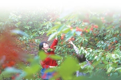 “首先就要通過建設防雨棚、溫室大棚等配套設施,盡量減少多雨、冰雹等因素的影響?!毙旄卉姳硎荆@些措施還包括采用滴灌、噴灌等在內的水肥一體化技術,從種植管理、灌溉施肥、整形修剪等方面多管齊下,確保櫻桃的好品質。同時,運用殺蟲板、太陽能殺蟲燈等綠色防控病蟲害技術,進一步推動櫻桃產業(yè)向無公害、綠色有機方向發(fā)展。為了延長櫻桃的保質期,他還打算引資聯(lián)建一個保鮮庫,可以先將采摘的櫻桃放到庫里預冷一段時間,再經過合適的包裝后發(fā)貨到較遠地區(qū),這樣櫻桃保鮮就能達到一周以上。