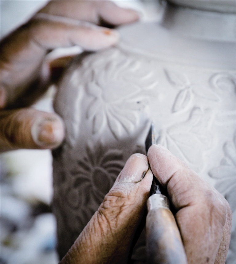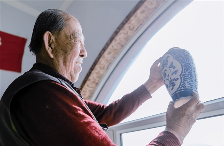 隨后,他走進(jìn)“饅頭窯”旁邊的一口窯洞,這是當(dāng)時(shí)張家的一間手工作坊,揉泥、拉坯、上釉等一系列制作陶瓷的工序都是在這里完成?!拔揖统錾谶@個(gè)村子,已經(jīng)是張家瓷藝的第九代傳人了。作為中國(guó)磁州窯譜系,清水河黑礬溝瓷藝生產(chǎn)歷史至少已有800年。”關(guān)于這項(xiàng)非遺的歷史故事,張選老人向記者娓娓道來(lái):大約400年前,他們張家走西口從山西來(lái)到清水河謀生,當(dāng)時(shí)清水河黑礬溝有一家姓杜的人家做陶瓷營(yíng)生,張家的先人在杜家打工,大概這樣打工做了三輩人吧,杜家忽然不做了,搬離了黑礬溝,他們張家便把杜家的產(chǎn)業(yè)買(mǎi)了下來(lái)繼續(xù)做?!澳莻€(gè)時(shí)候黑礬溝生產(chǎn)的瓷器都與人們生活息息相關(guān),比如腌菜缸、水甕、碗盤(pán)等,一個(gè)家庭手工作坊一天能生產(chǎn)500個(gè)碗呢,生意很好,人們靠做這個(gè)營(yíng)生也過(guò)上了不錯(cuò)的生活?!睆堖x回憶著清水河瓷藝鼎盛時(shí)期的場(chǎng)景。上個(gè)世紀(jì)70年代,由于交通、技術(shù)等原因,黑礬溝燃燒了幾百年的窯火熄滅,傳統(tǒng)“饅頭窯”被正式廢棄,轉(zhuǎn)移到窯溝鄉(xiāng)后手工作坊變成了機(jī)械化生產(chǎn),這也讓清水河的陶瓷名聲大噪。當(dāng)時(shí),在窯溝鄉(xiāng)一帶,從事陶瓷生產(chǎn)的有近萬(wàn)人,陶瓷業(yè)成為清水河支柱產(chǎn)業(yè)。
